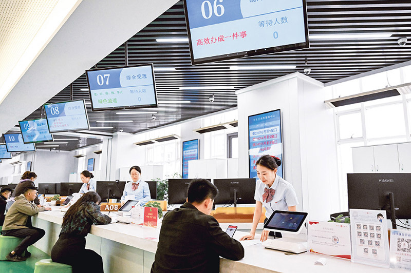 把為基層減負(fù)落到實(shí)處,需要各級(jí)黨組織把“應(yīng)減之負(fù)”減下去,把“應(yīng)盡之責(zé)”擔(dān)起來,將減負(fù)成效化作新征程上真抓實(shí)干、攻堅(jiān)克難的強(qiáng)大動(dòng)力。圖為2025年4月16日,在內(nèi)蒙古鄂爾多斯市東勝區(qū)政務(wù)服務(wù)中心,工作人員辦理民營(yíng)企業(yè)相關(guān)業(yè)務(wù),以綜合舉措持續(xù)優(yōu)化營(yíng)商環(huán)境。 新華社記者 李志鵬/攝