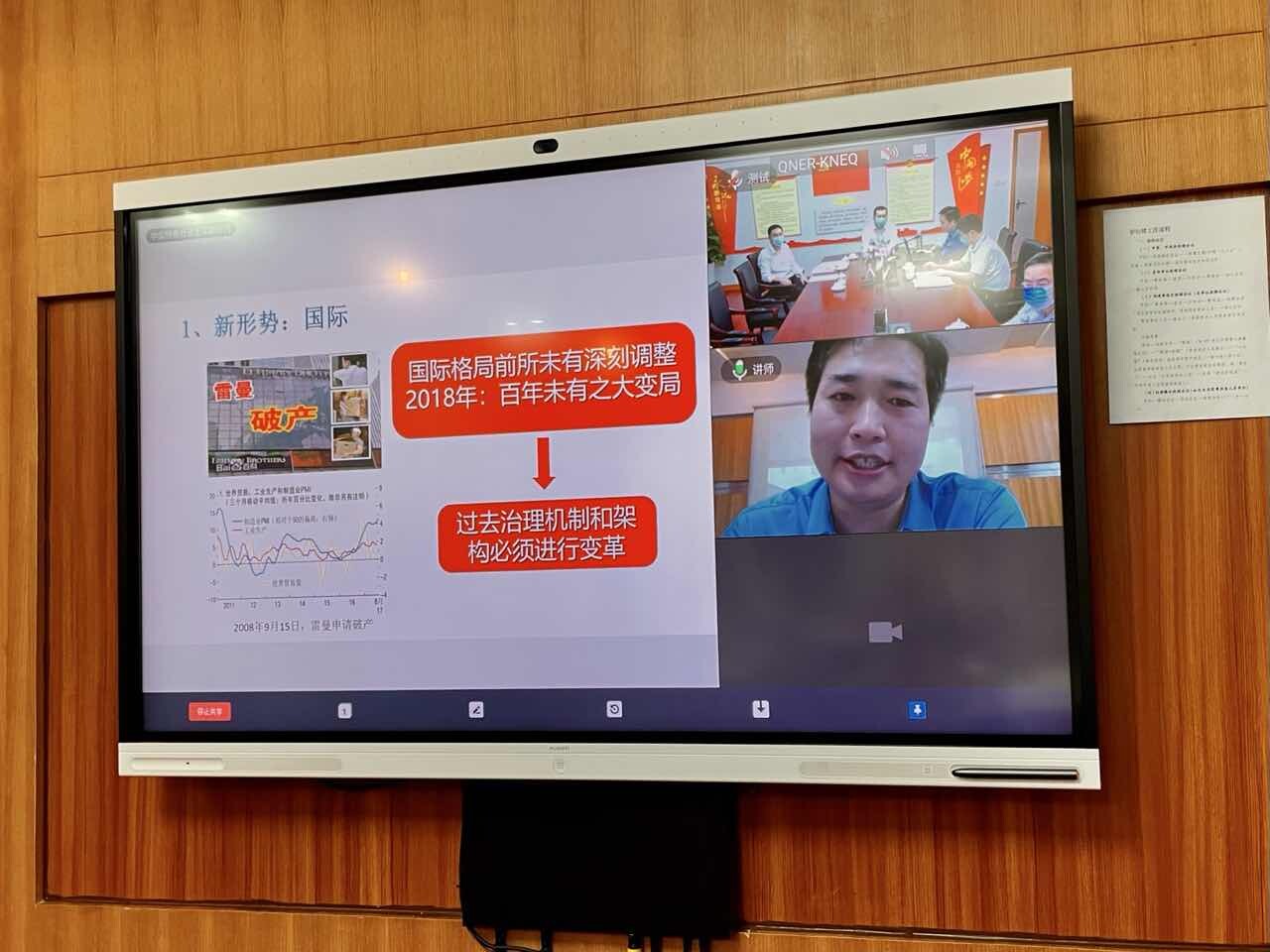 3月22日,市社科院(社科聯(lián))黨組書記、院長(zhǎng)吳定海主持召開黨組理論學(xué)習(xí)中心組(擴(kuò)大)學(xué)習(xí)會(huì),邀請(qǐng)市委黨校黨史黨建黨性教研部副教授王定毅講《中國(guó)特色社會(huì)主義新時(shí)代》專題黨課。會(huì)議采取線上、線下相結(jié)合的方式召開,院(聯(lián))黨組成員、副院長(zhǎng)范偉軍,黨組成員、副院長(zhǎng)楊建到場(chǎng)參會(huì),黨組成員、二級(jí)巡視員陳少兵,領(lǐng)導(dǎo)班子成員、一級(jí)調(diào)研員羅思以及全院干部職工通過“粵視會(huì)”參會(huì)。