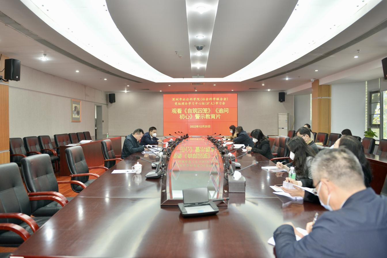 12月20日,市社科院(社科聯)召開黨組理論學習中心組(擴大)學習會,組織全體干部職工觀看省紀委監制攝制的《自筑囚籠》《追問初心》警示教育片。院(聯)黨組書記、院長吳定海,黨組成員、副院長范偉軍,黨組成員、二級巡視員陳少兵以及全院干部職工參會。