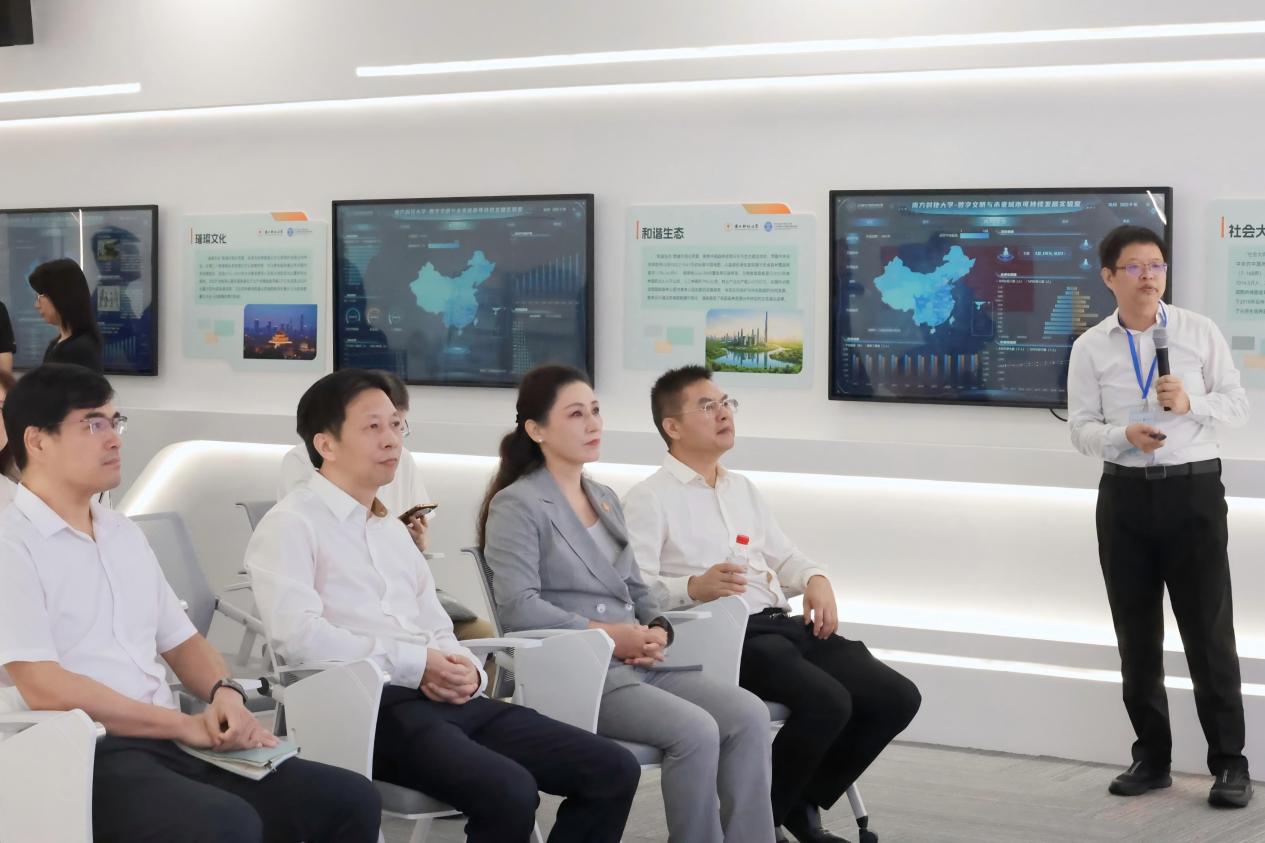 調研期間,何新紅一行參觀了南方科技大學社科中心暨社科高等研究院的“陶說考古陶瓷標本數據庫陳列館”,走訪了廉潔研究院的“大數據與AI監督實驗室”和全球城市文明典范研究院的“數字文明與未來城市可持續發展實驗室”,了解了南方科技大學市社科重點人文基地建設情況。