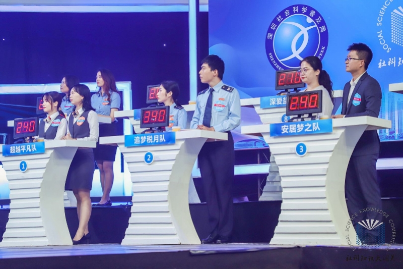 今天的決賽分為五個環節,分別是“奮勇爭先”、“一觸即發”、“心有靈犀”、“機智過人”和“巔峰對決”。選手們圍繞深圳城市發展歷史事件、人文知識、時事新聞、社會熱點展開近2個小時激烈的角逐,最終追夢稅月隊獲得本屆知識競賽城際邀請賽的冠軍、水務雙宇隊獲得亞軍、美少女壯士隊獲得季軍。