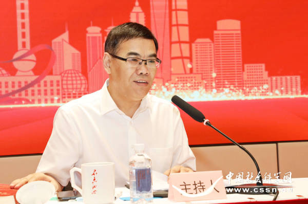 中共上海市委黨校副校長、上海市中國共產黨偉大建黨精神研究中心副主任兼秘書長曾峻主持會議并發言 本網記者 查建國/攝